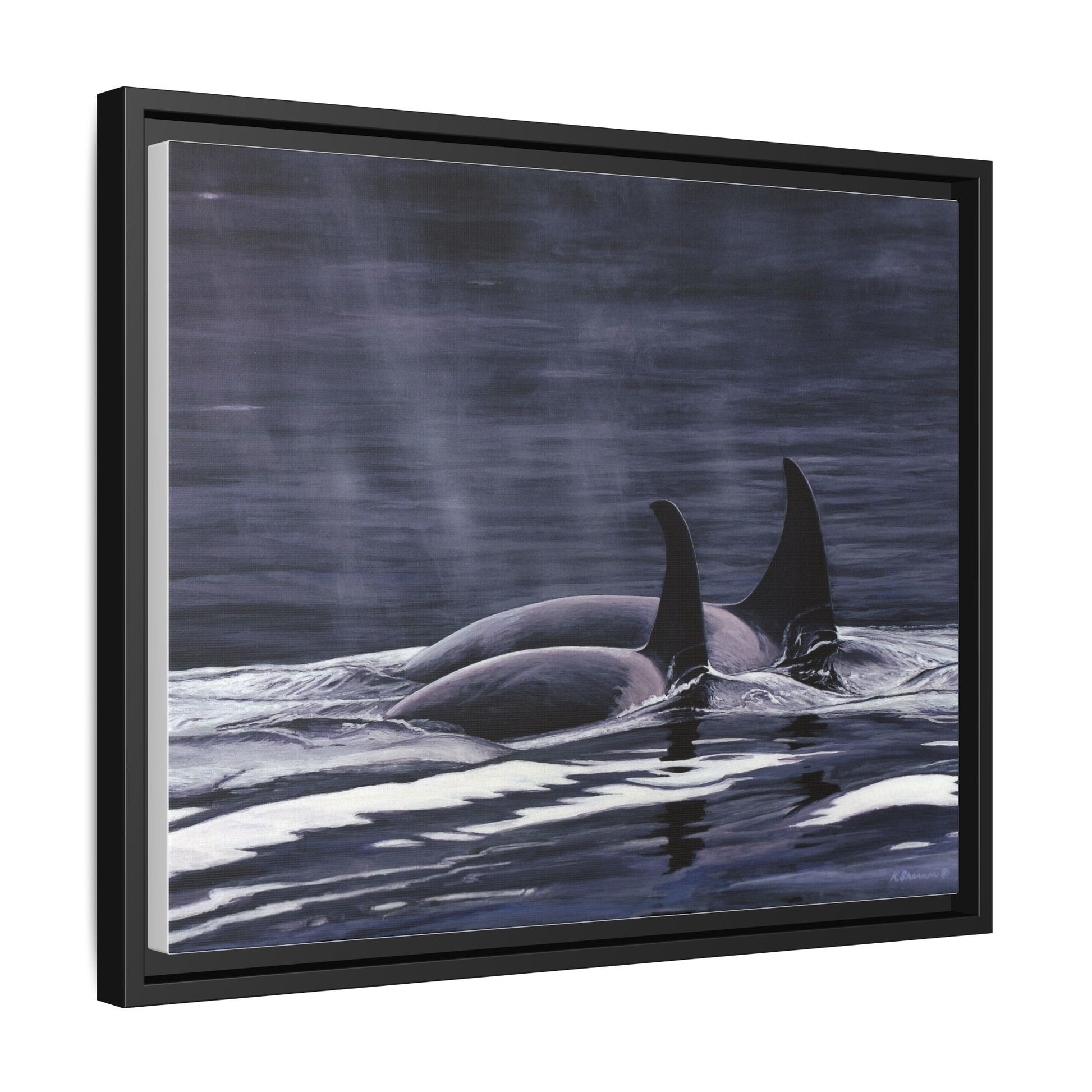 Orca Pod Matte Framed Canvas Print — Whale Ocean Photography Wall Art